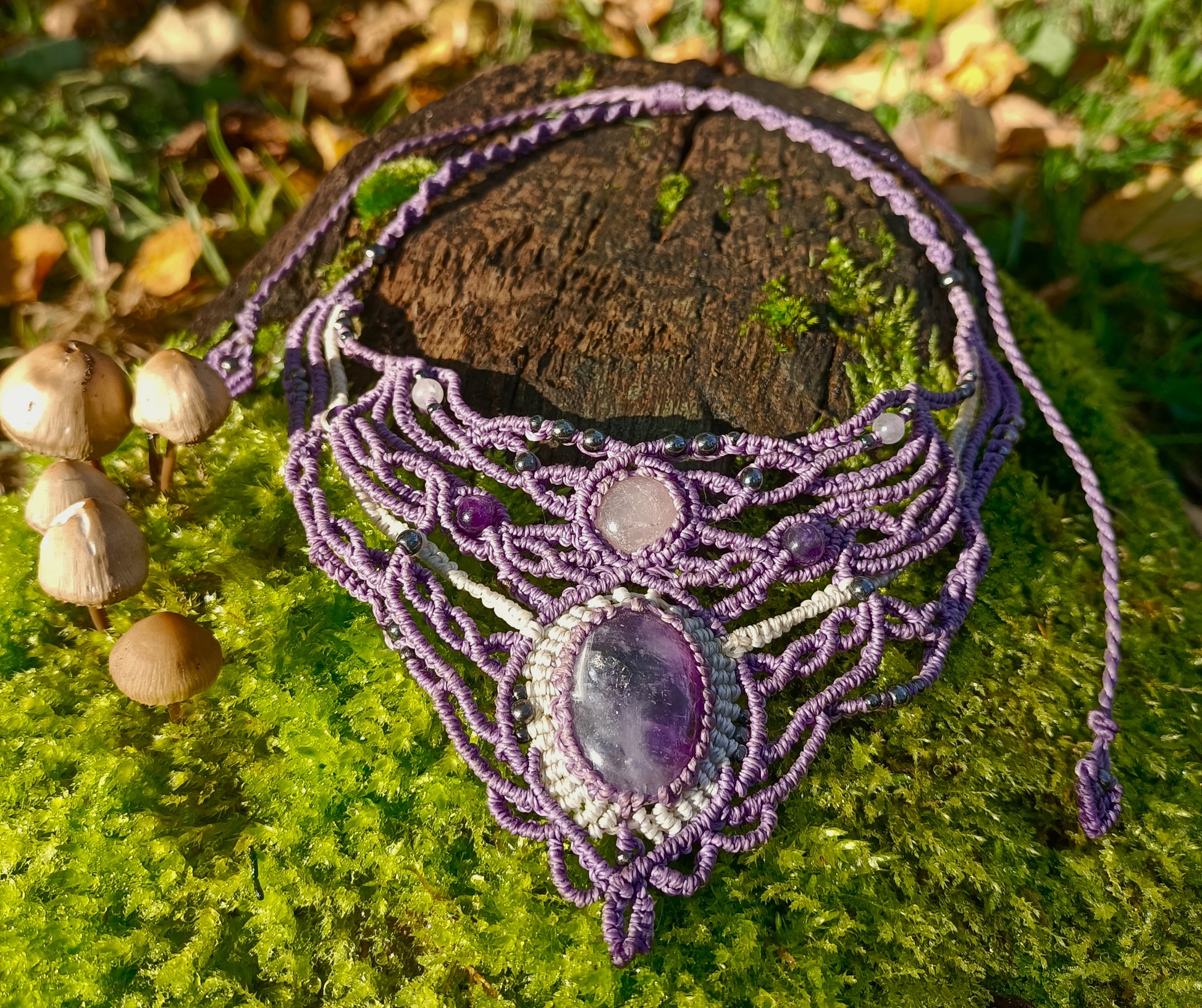 Collier de taille réglable avec une belle améthyste et un quartz rose sertis.